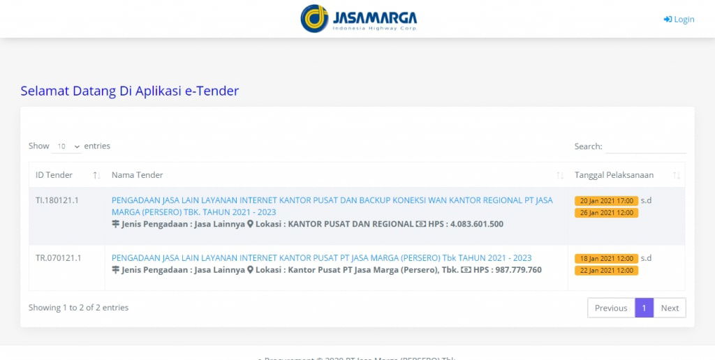 Aplikasi pengadaan PT Jasa Marga Persero (VMS, RUP, E-Tender, E-Katalog, E-Invoice, E-Dashboard)